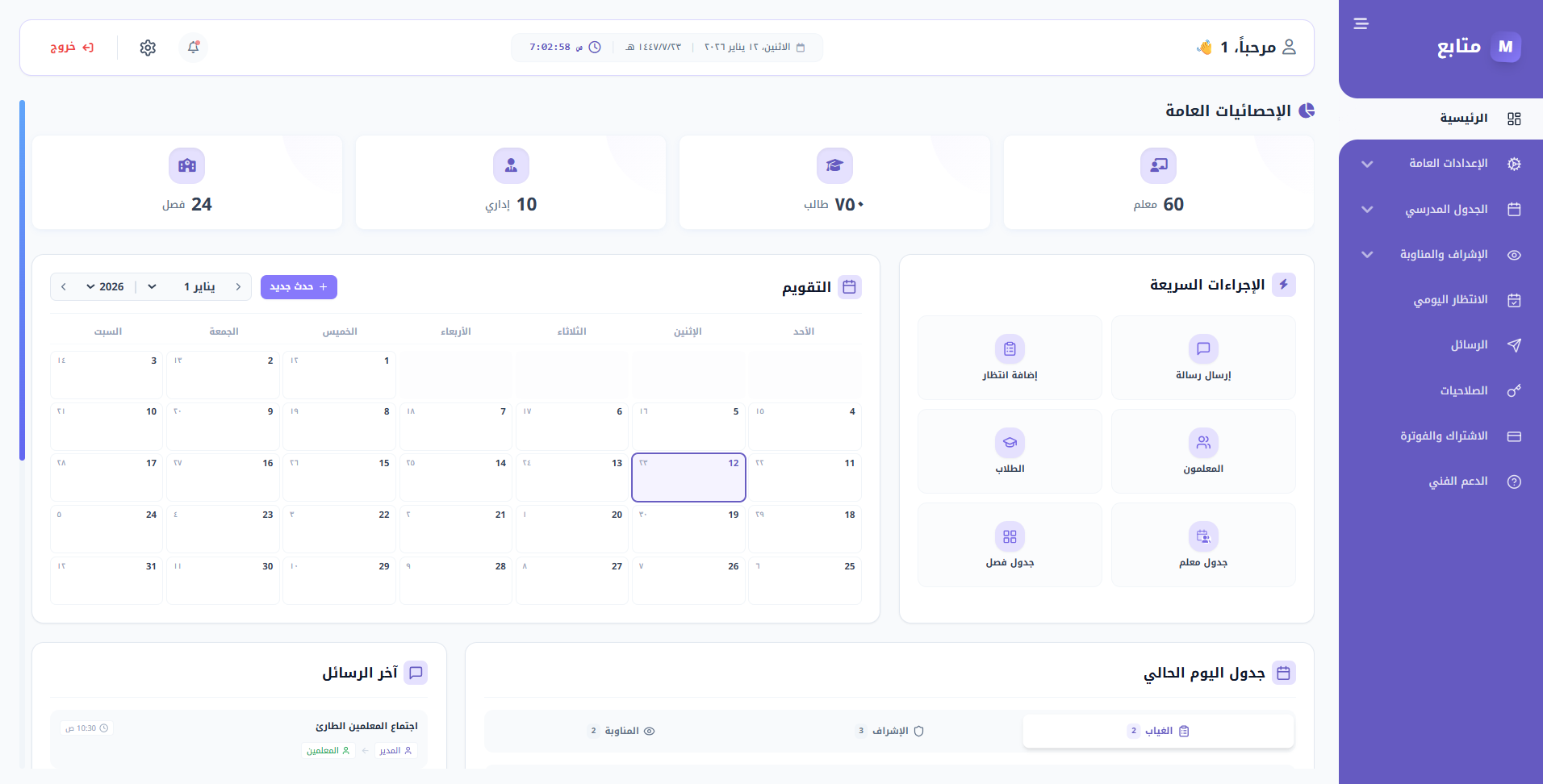 نظام متابع غيّر طريقة إدارتنا للمدرسة بالكامل. التقارير الدقيقة وتوفير الوقت هو ما كنا نحتاجه حقاً.